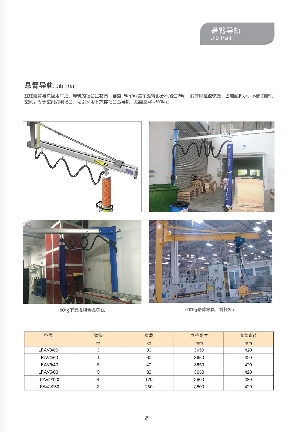2.懸臂導(dǎo)軌,單個(gè)立柱安裝,占地面積小,不影響貨物托盤的流轉(zhuǎn),最大臂長(zhǎng)6m,承重40-1000kg;